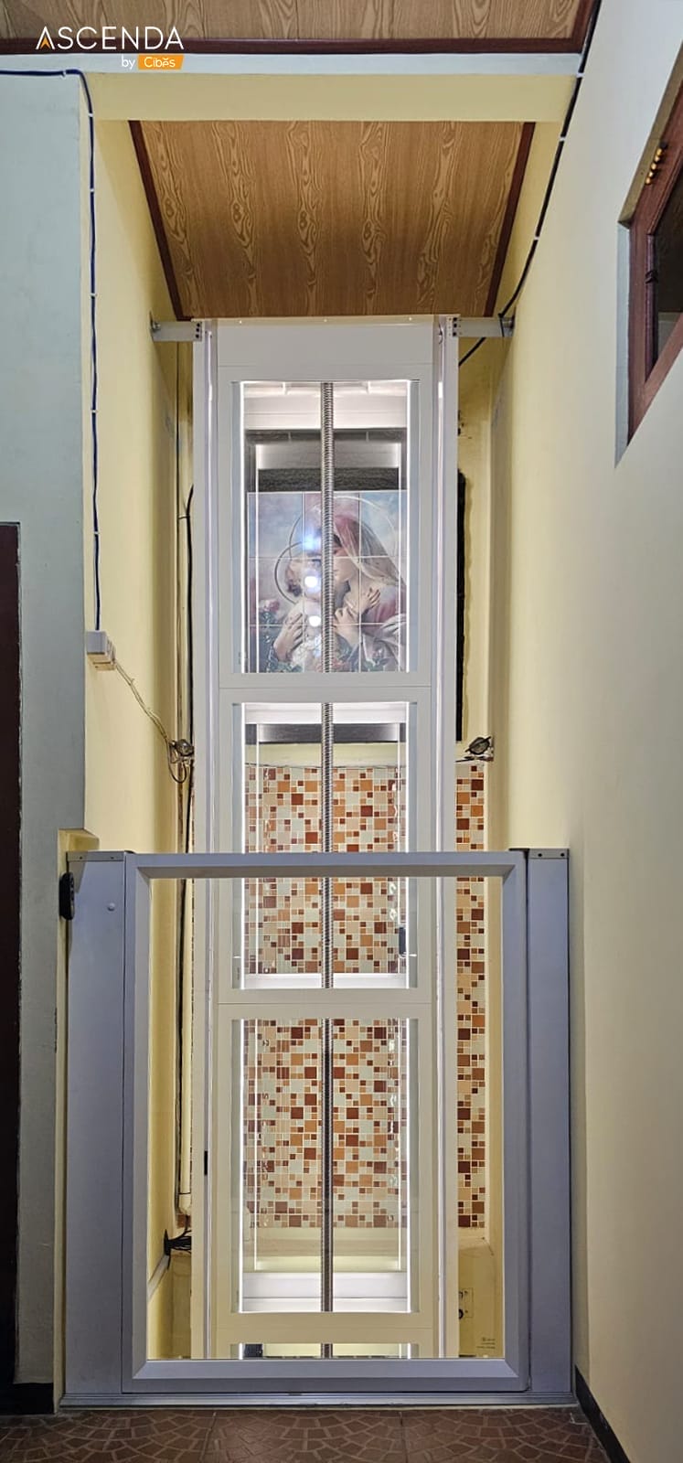 ลิฟท์ Ascenda Lift ลิฟท์บ้านขนาดเล็ก (Size S) เหมาะกับใช้ภายในบ้าน 2 ชั้นโดยเฉพาะ เป็นลิฟท์ขับเคลื่อนด้วยระบบสกรู มาพร้อมห้องโดยสาร ไร้ปล่องลิฟท์ ไม่ต้องขุดบ่อลิฟท์ ไม่มีห้องเครื่อง ประหยัดพื้นที่