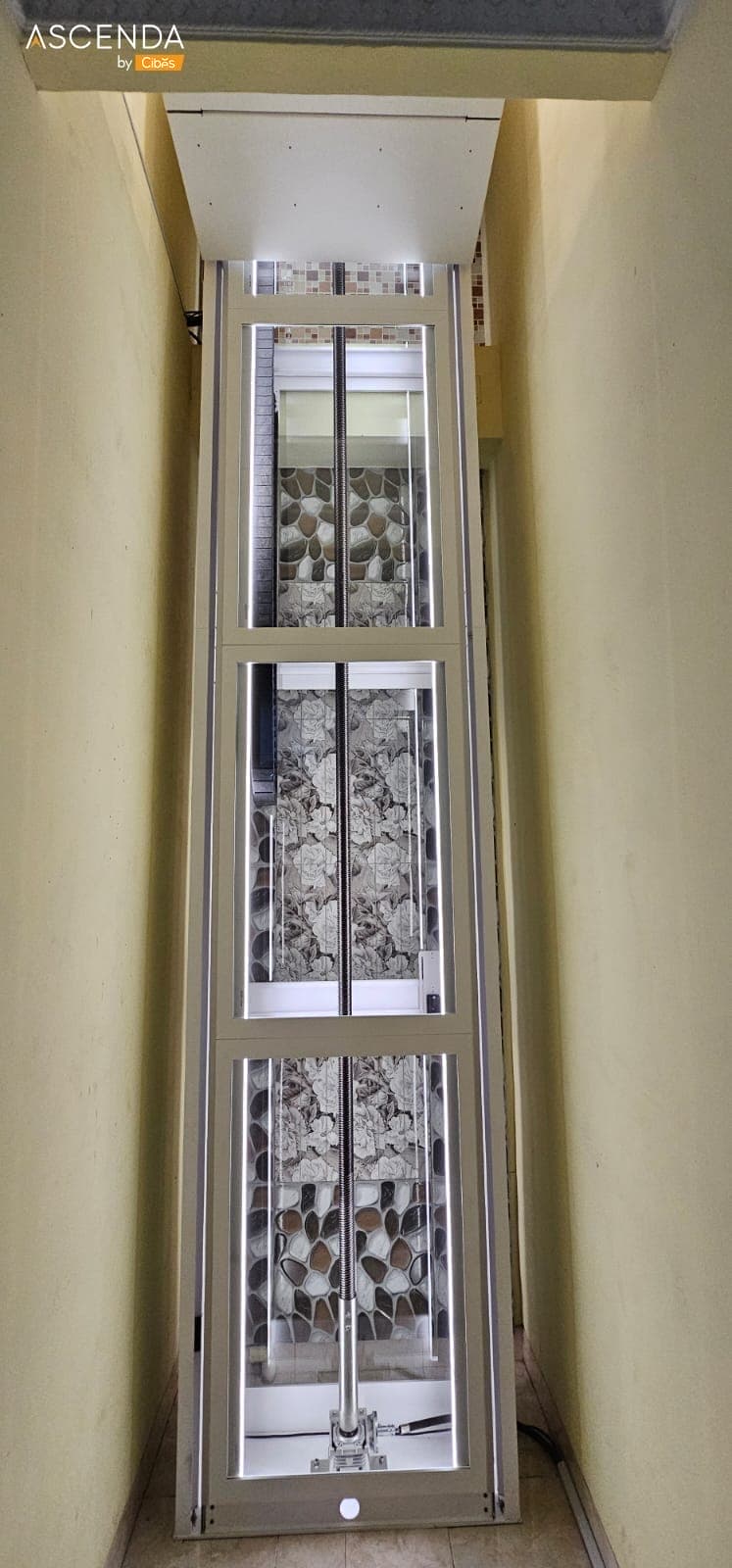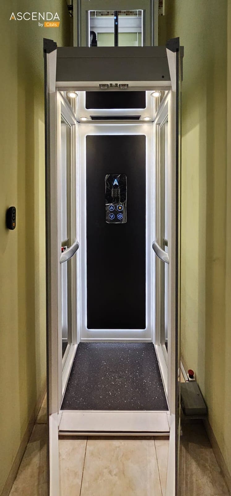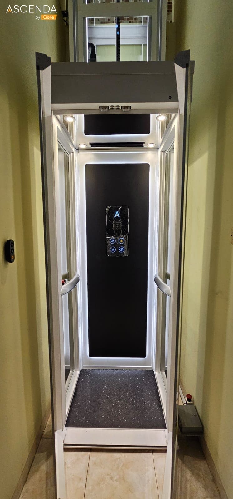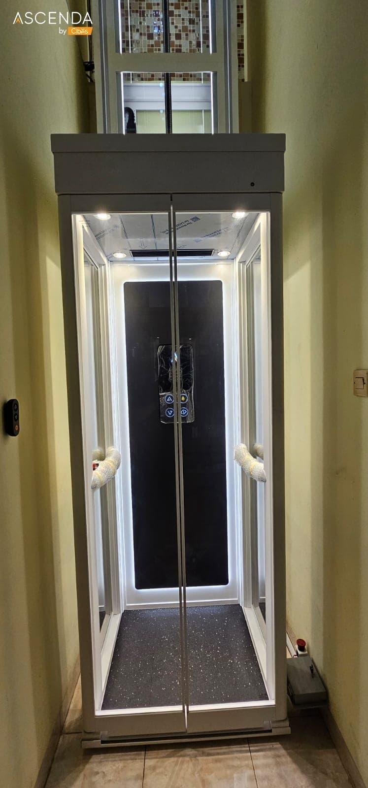 ลิฟท์ Ascenda Lift ลิฟท์บ้านขนาดเล็ก (Size S) เหมาะกับใช้ภายในบ้าน 2 ชั้นโดยเฉพาะ เป็นลิฟท์ขับเคลื่อนด้วยระบบสกรู มาพร้อมห้องโดยสาร ไร้ปล่องลิฟท์ ไม่ต้องขุดบ่อลิฟท์ ไม่มีห้องเครื่อง ประหยัดพื้นที่